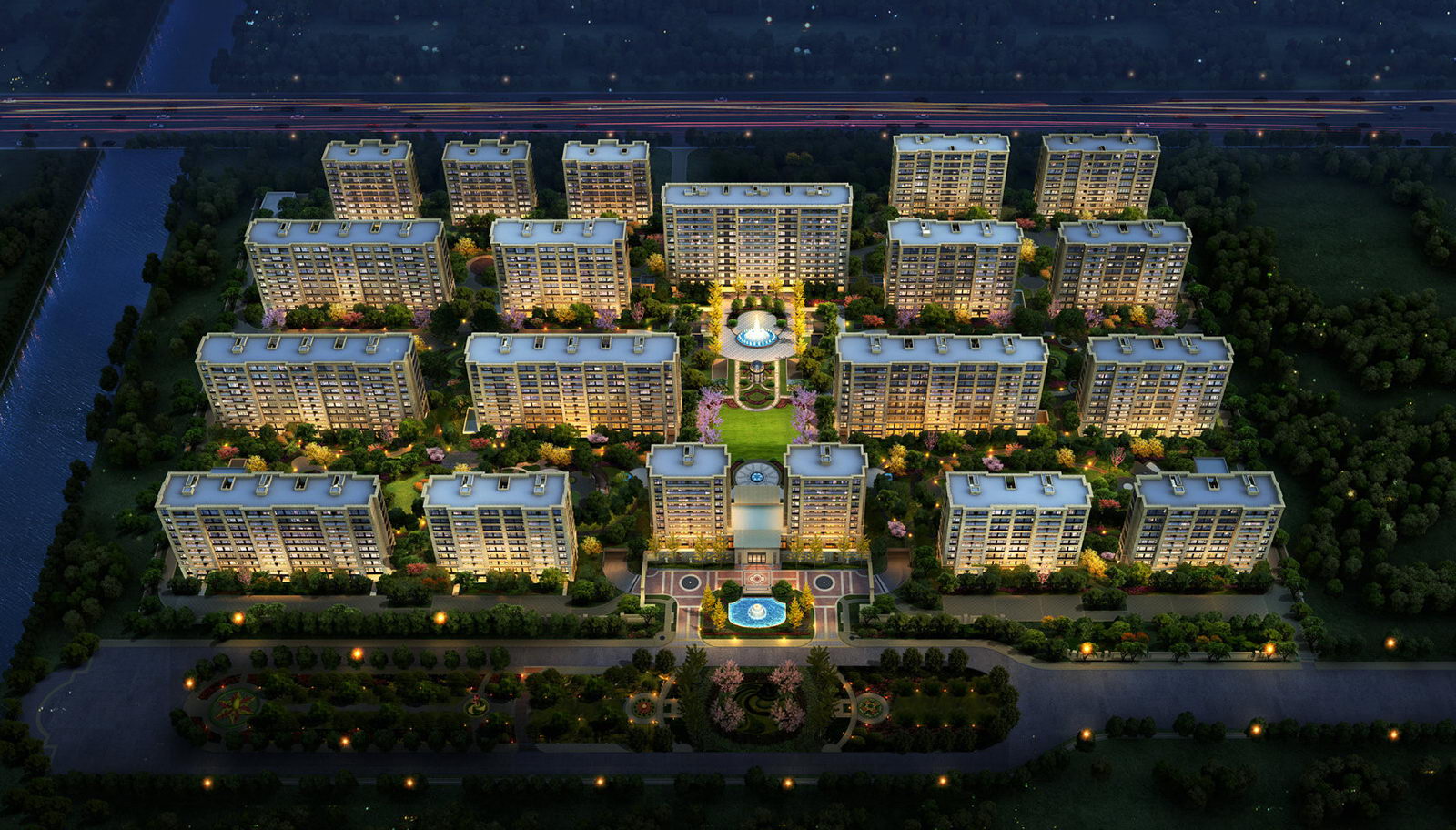 通過城市公共空間、社區公共空間、組團公共空間三層空間的密度及形態的變化創造了豐富的社區空間,在組團中心圍合形成大尺度的中心花園,營造高貴典雅的社區環境氛圍。
