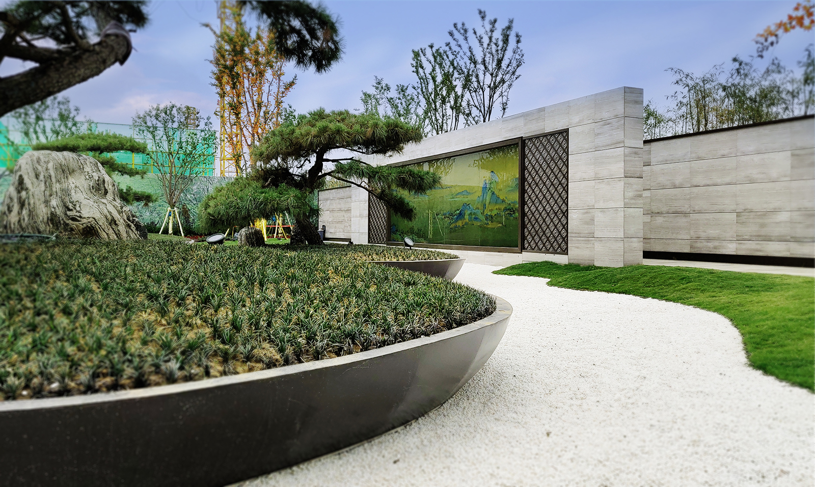 本案私園內布置小而精的藝術性的小品,