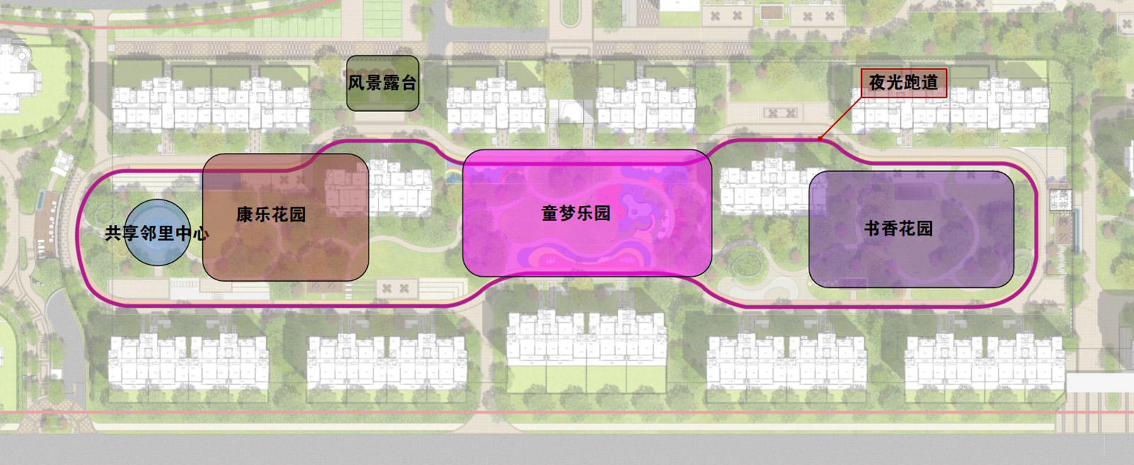 高層區以高端人才為目標群體,宅間組團設置以萌寵樂園、健身花園為主空間,配套設計多個宅前休閑空間的景觀功能區,契合業主群體生活起居習性。