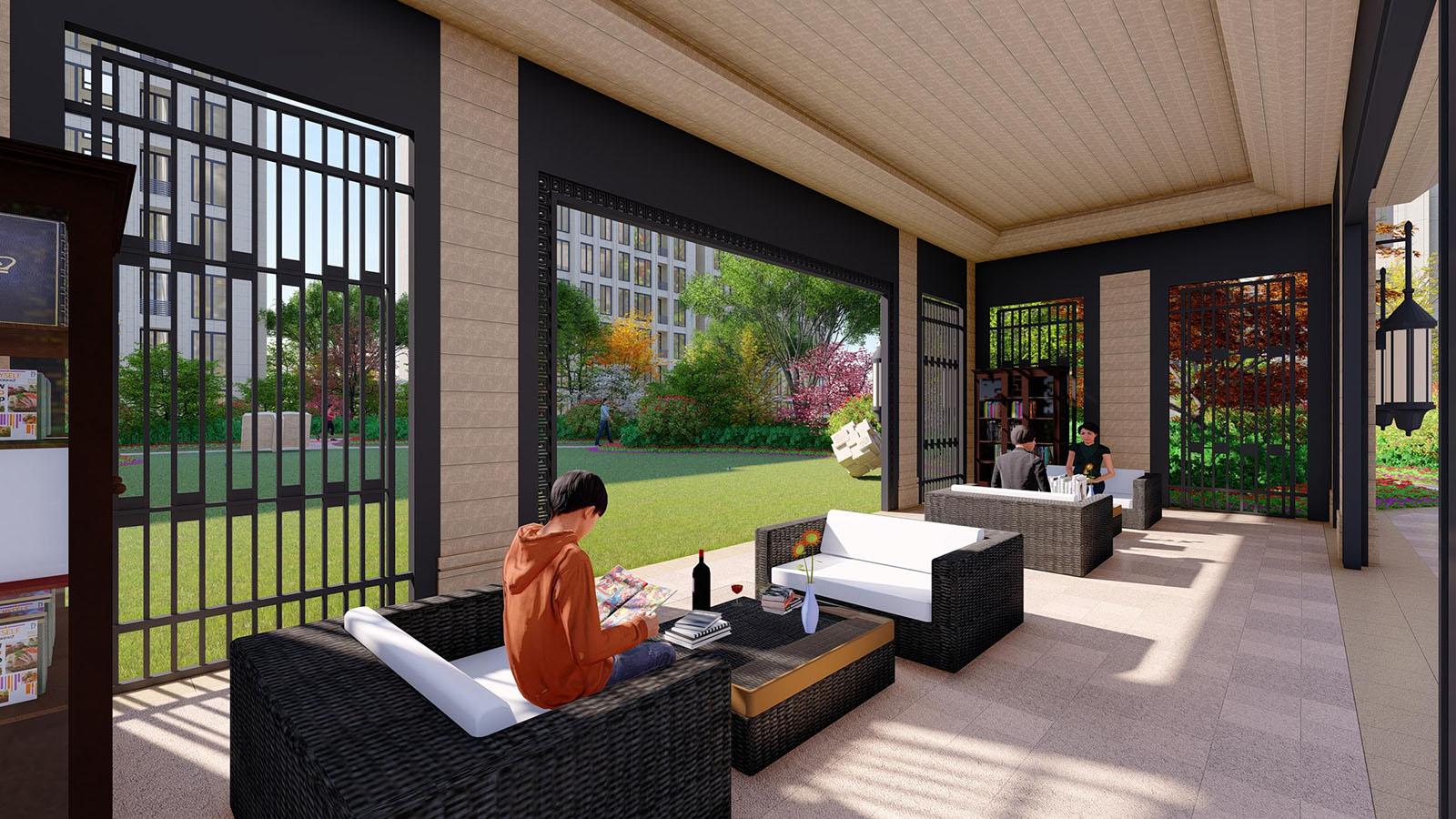 書香花園作為本案溫暖、人性化的設計標志亮點——為高端居住業主打造陽光書房、書香院落,打造宅前、窗前雅致空間 ,人性化關懷貫穿始終。旨在為業主創造一個促進鄰里、入學兒童交流、休閑讀書空間,休閑讀書平臺,作為整個主題區核心的庭院空間,既可讓業主暢享周末的歡愉時光,更可在別具新古典韻味園林空間中,品味風雅,于園中吟詩作對、品茗讀書,幸福棲居。