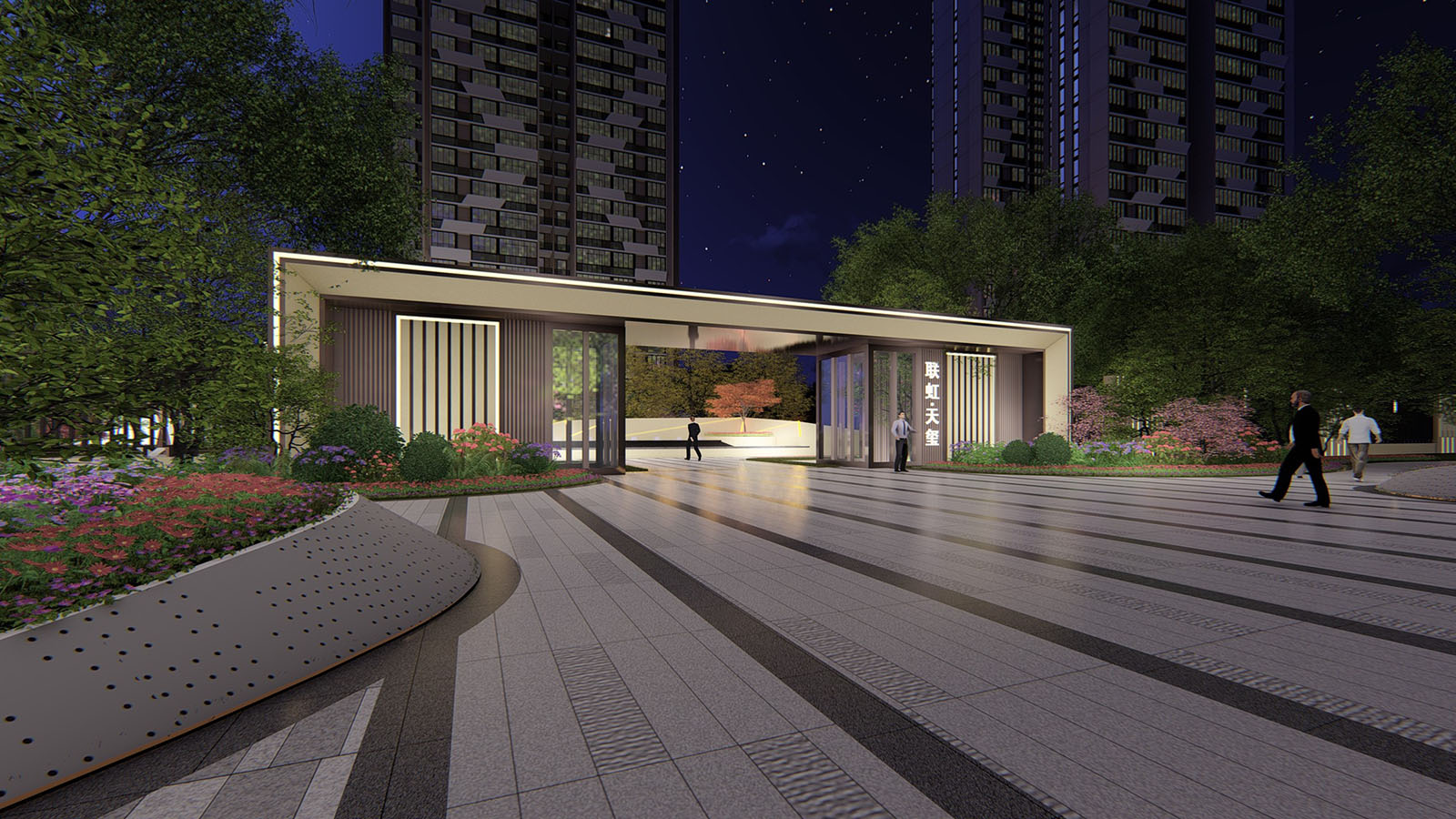 4、現代線條曲折圍合,濃郁的現代感、都市感。