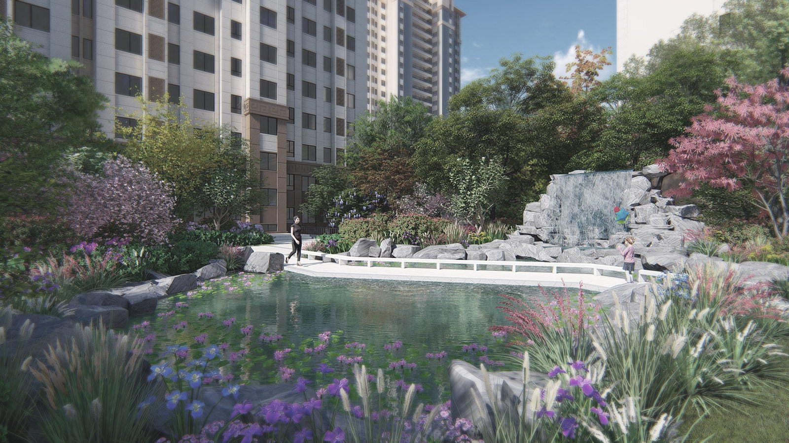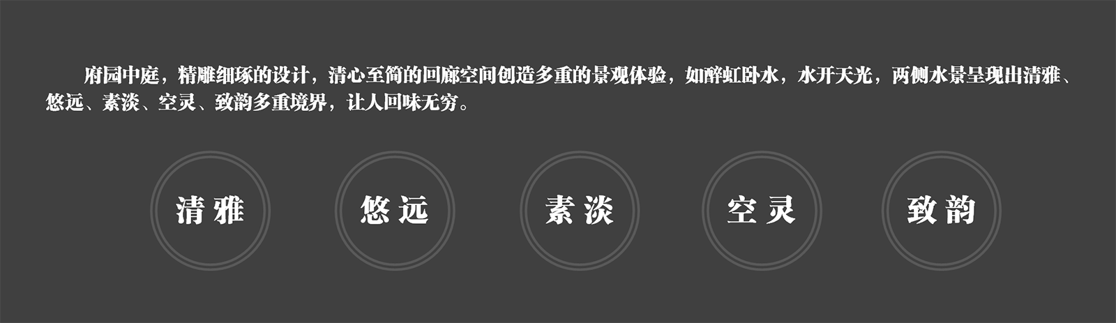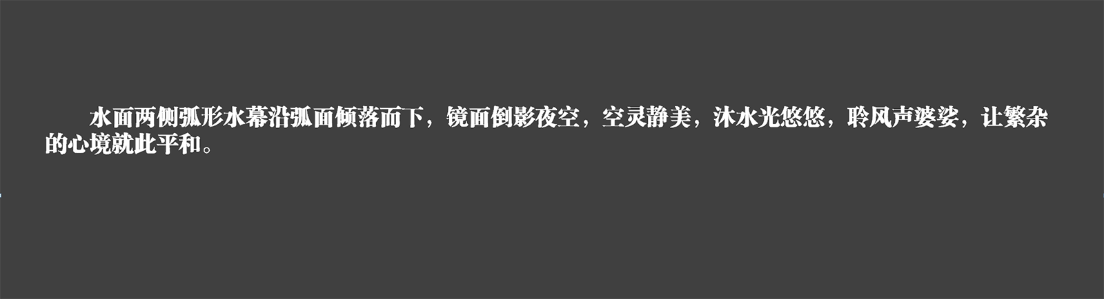 鏡面水景輕靈、優(yōu)雅、致韻;雙排四座宮燈雕琢萬(wàn)字符,寓意前程萬(wàn)福。
