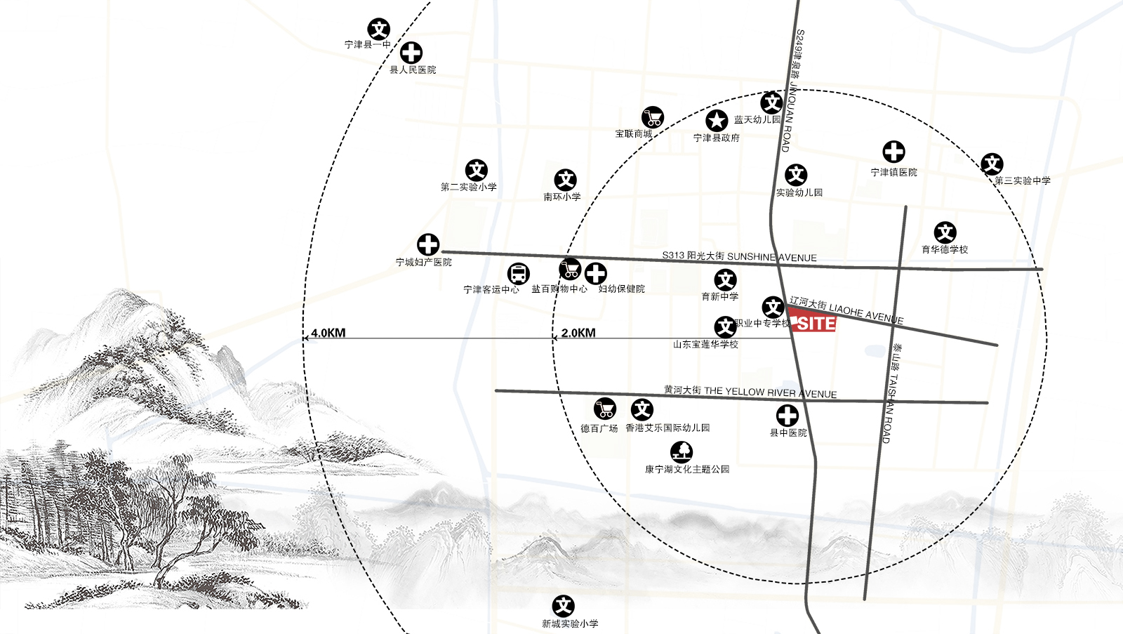 德州市位于黃河下游,山東省的北大門。歷史上,德州就是京杭大運(yùn)河的一個(gè)重要碼頭,自古有“九達(dá)天衢”、“神京門戶”之稱,京滬鐵路、石德鐵路和德龍煙鐵路在此交匯,是華東、華北重要的交通樞紐。項(xiàng)目位于德州核心區(qū)域,正門北面遼河大街,中正巍峨,氣勢(shì)雄奇,得天獨(dú)厚。基于德州地域和項(xiàng)目定位,我們把北方園林的莊嚴(yán)威儀與南方園林的風(fēng)雅婉約相結(jié)合。