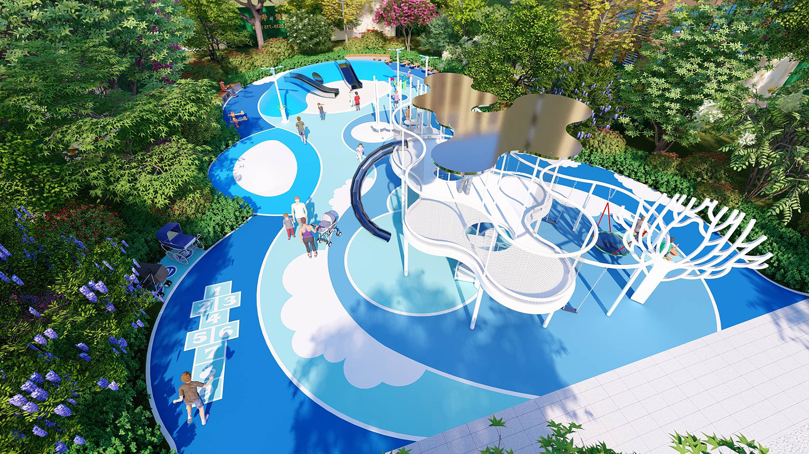 延續(xù)1至12歲區(qū)間全齡兒童主題樂園設(shè)計(jì),并對樂園各區(qū)域做分齡設(shè)計(jì),兼顧長輩的看護(hù)需求,以天空之城為主題,布置云端滑梯、互動風(fēng)車、夢幻飛行搖搖馬等豐富的兒童互動、娛樂設(shè)施。